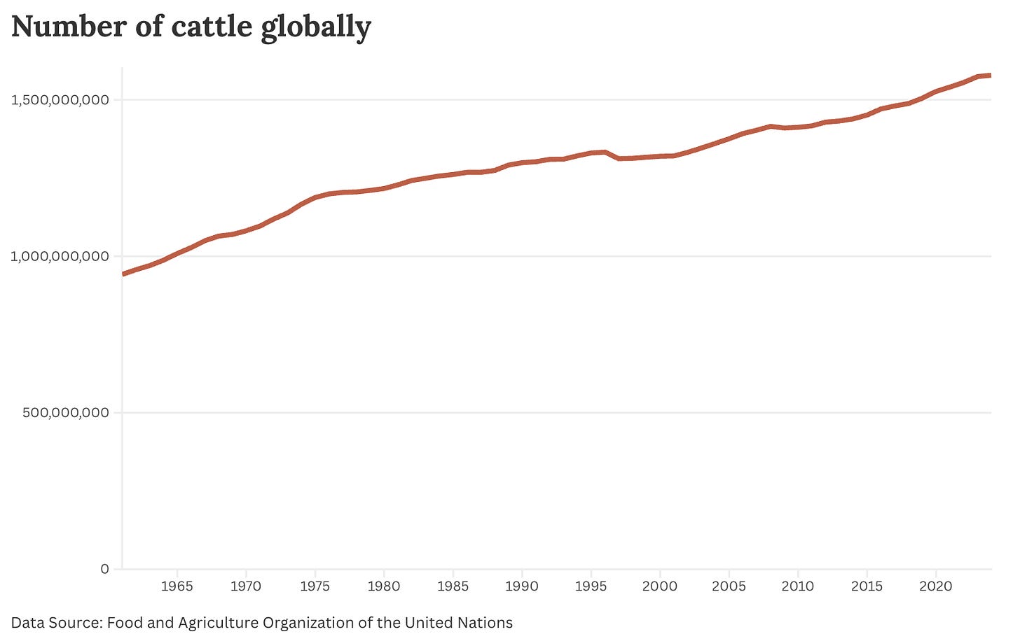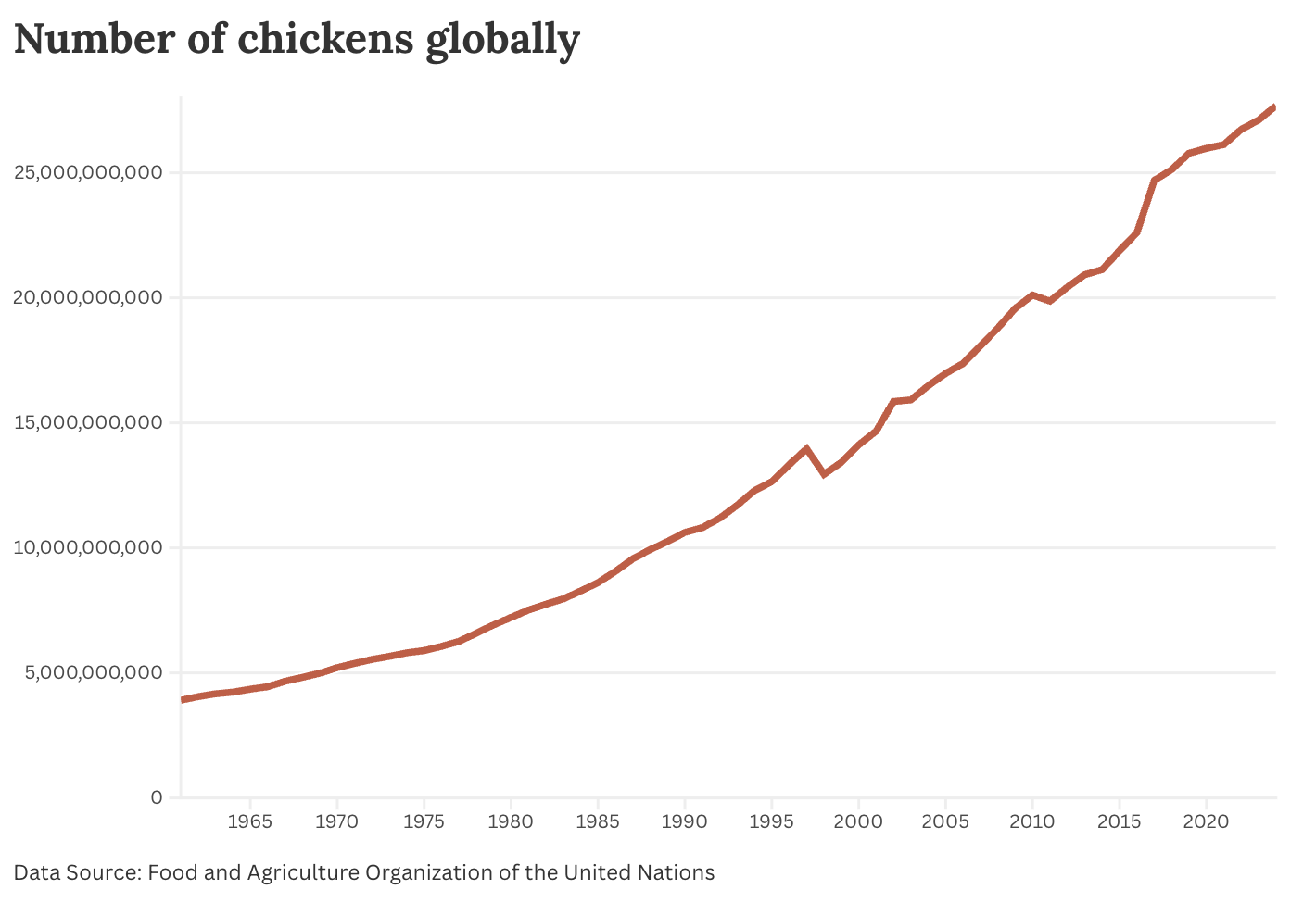 It would be like showing this chart of chickens (which are mostly factory-farmed) and saying, “People say that bird populations are struggling. But there are more chickens than ever!”