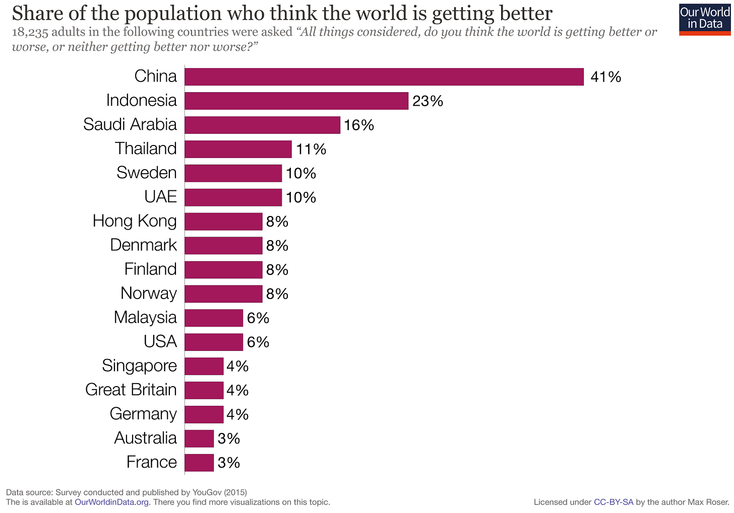 Only a few percent of people in France, Australia, Germany, or Great Britain thought that the world was improving.